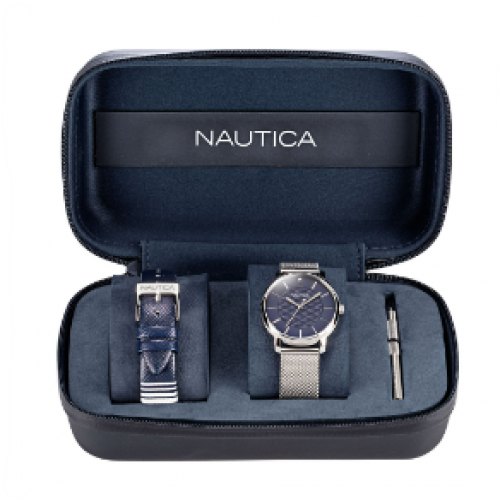 Con dos correas intercambiables, este reloj ofrece opciones elegantes para combinar con looks casuales y profesionales, mientras que una esfera de inspiración náutica agrega un toque de marca para un clásico instantáneo.